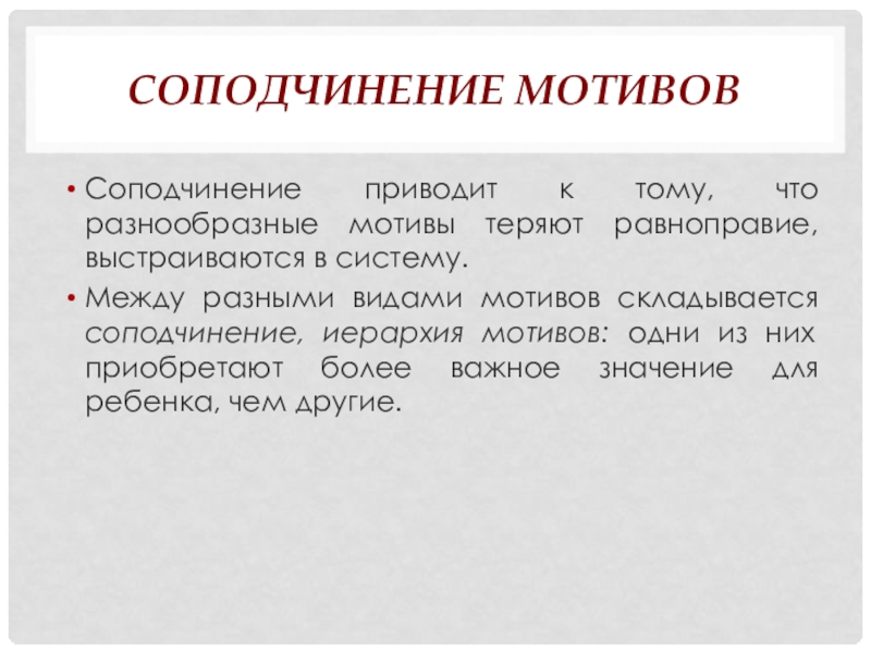 Соподчинение приводит к тому, что разнообразные мотивы теряют равноправие,