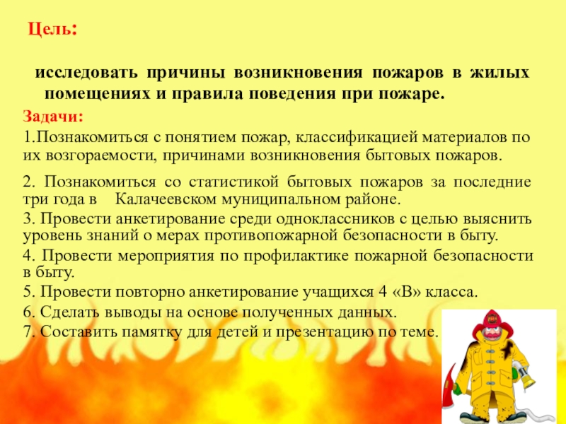 Анкетирование с целью выявления уровня знаний учащихся класса по пожарной безопасности в быту.