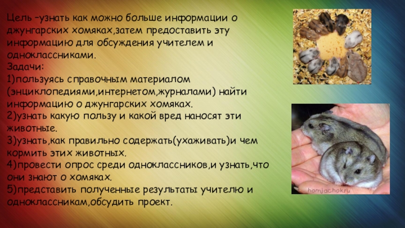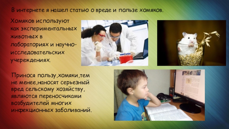 В интернете я нашел статью о вреде и пользе хомяков.