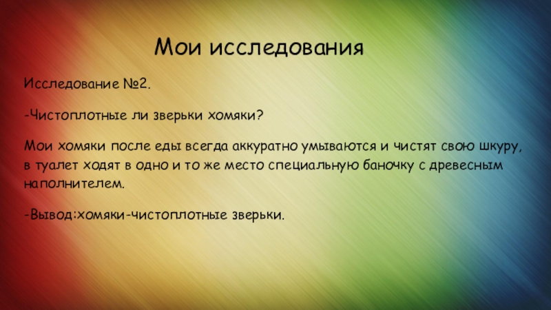 -Вывод:хомяки-чистоплотные зверьки.