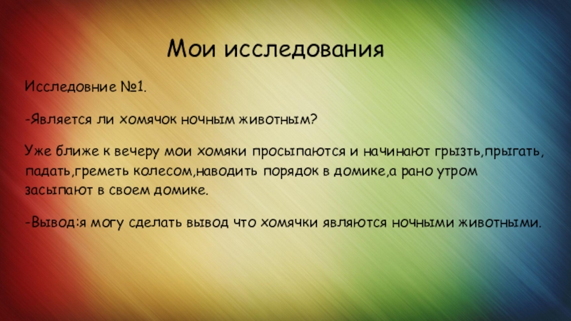 -Вывод:я могу сделать вывод что хомячки являются ночными животными.
