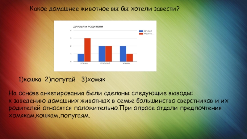 1)кошка 2)попугай 3)хомяк