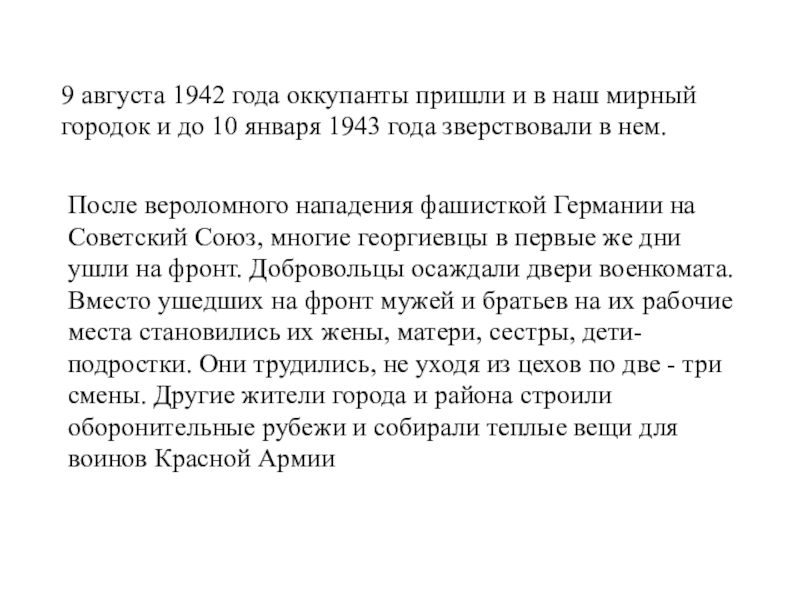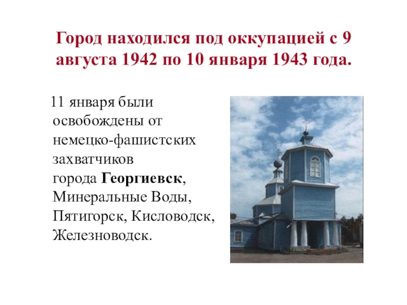Город находился под оккупацией с 9 августа 1942 по 10 января 1943 года.