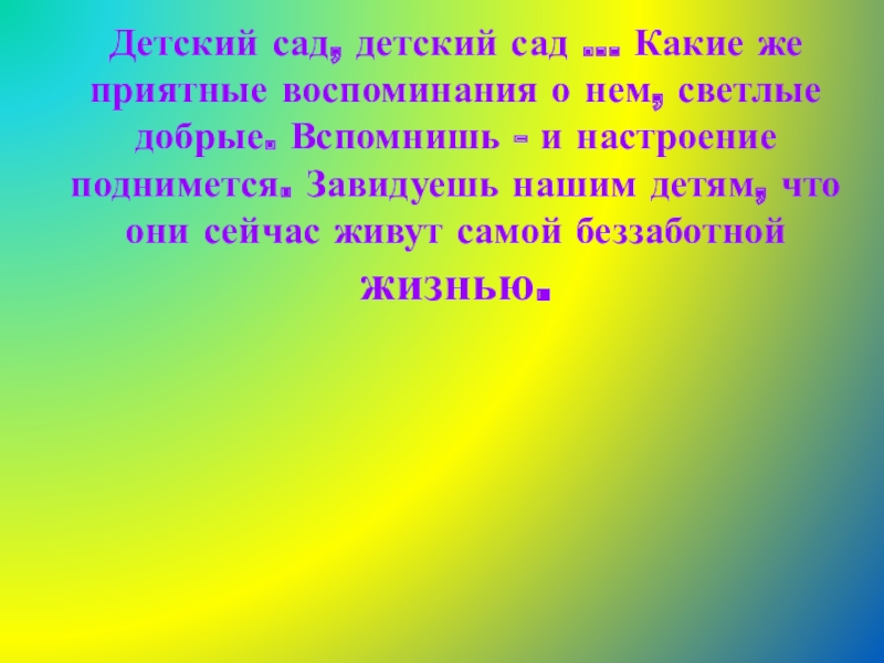 Слайд 2Детский сад, детский сад ... Какие же приятные воспоминания о нем,