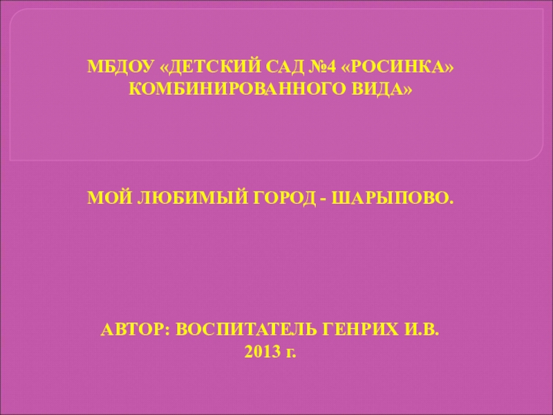 ВОСПИТАТЕЛЬ ГЕНРИХ И.В.