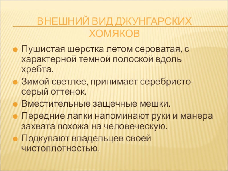 Слайд 16ВНЕШНИЙ ВИД ДЖУНГАРСКИХ ХОМЯКОВ