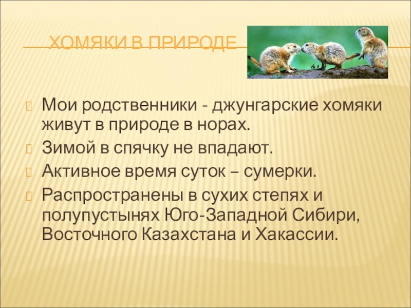 Слайд 15ХОМЯКИ В ПРИРОДЕ