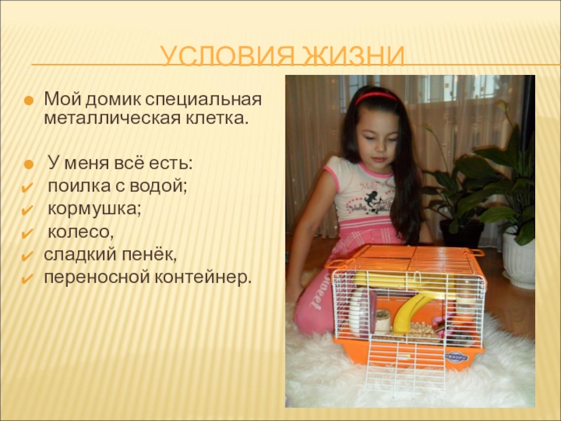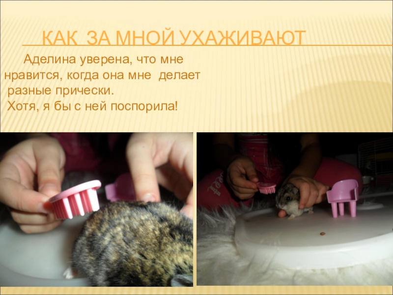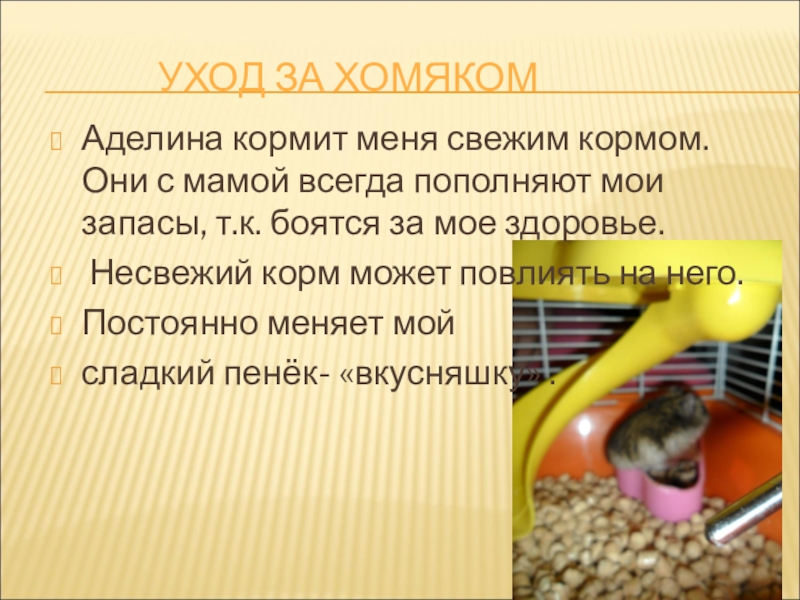 Слайд 6Аделина кормит меня свежим кормом. Они с мамой всегда пополняют мои
