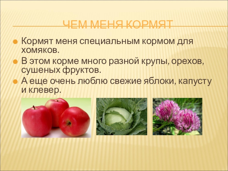 Слайд 10ЧЕМ МЕНЯ КОРМЯТ
