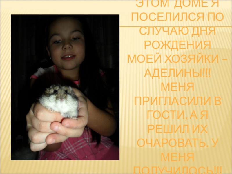 Слайд 2Я – ХОМКА, В ЭТОМ ДОМЕ Я ПОСЕЛИЛСЯ ПО СЛУЧАЮ ДНЯ