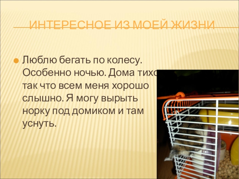 о жизни хомяков, исходя из личных наблюдений;