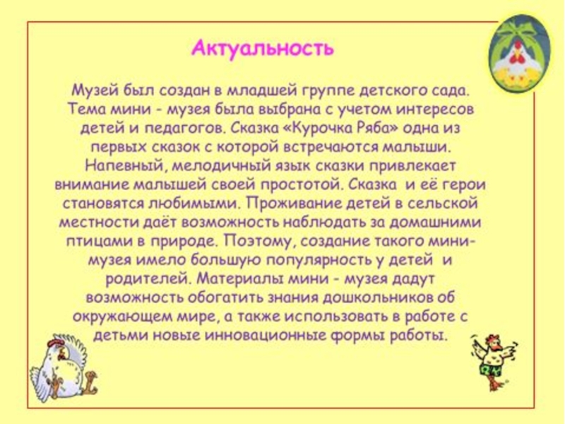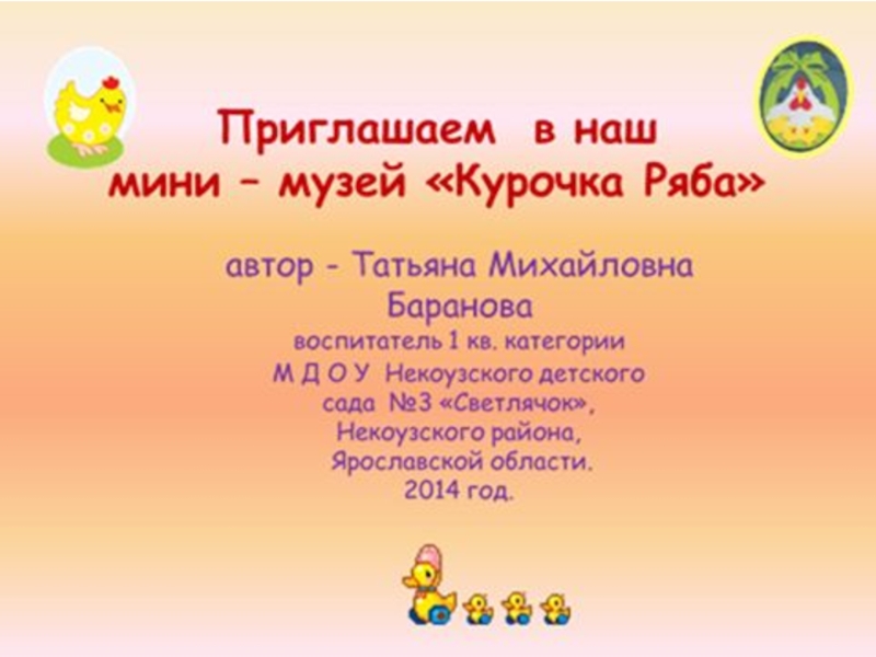 Презентация, доклад на тему Мой мини-музей Курочка Ряба