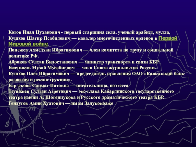 типа Залукокоаже, данных о судьбах замечательных людей, их жизни и деятельности.