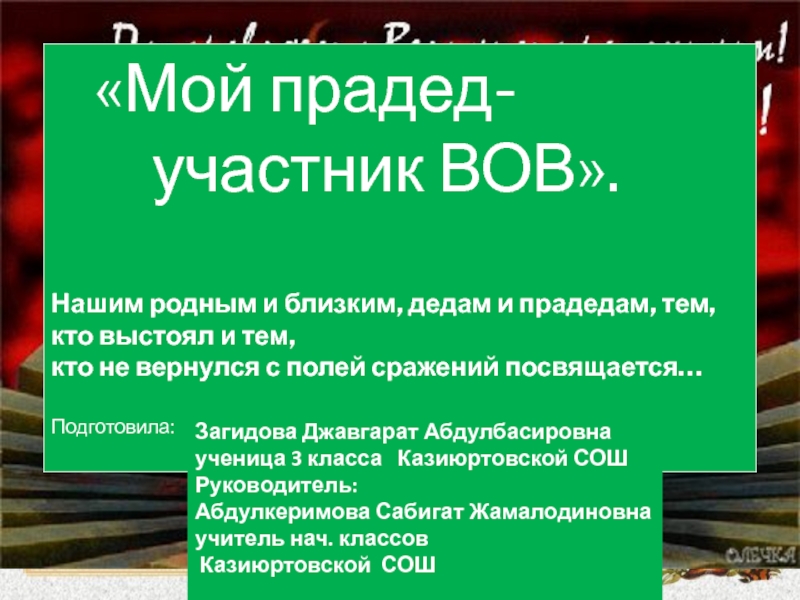 2. Сохранить память о прадедах учеников, участниках Великой