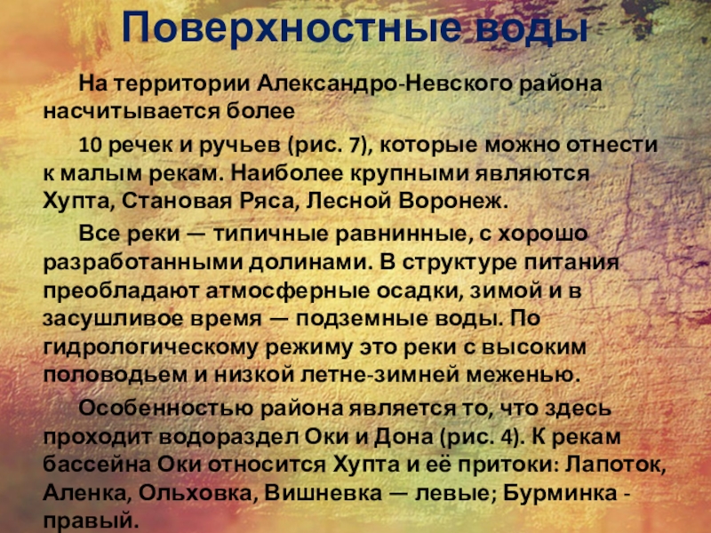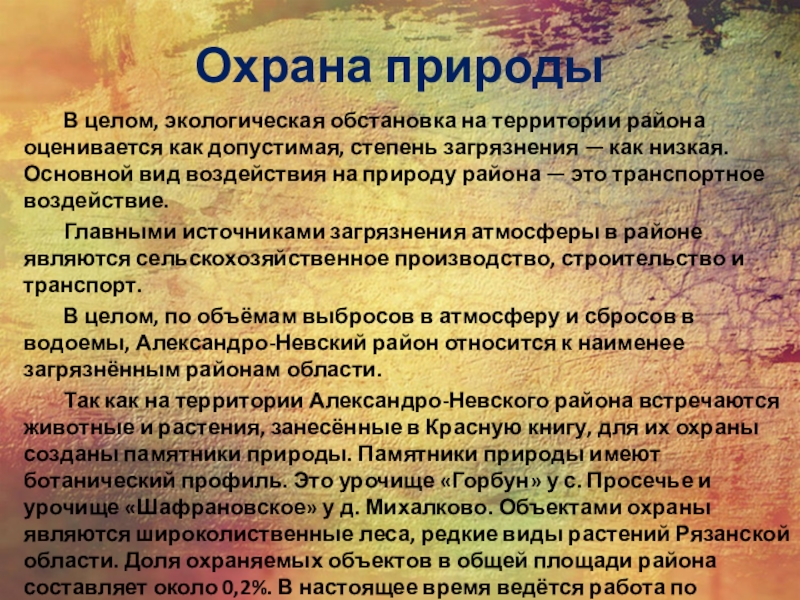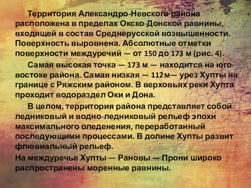 Слайд 10 Территория Александро-Невского района расположена в пределах Окско-Донской равнины, входящей в состав