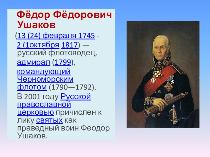 Слайд 9 Фёдор Фёдорович Ушако́в
