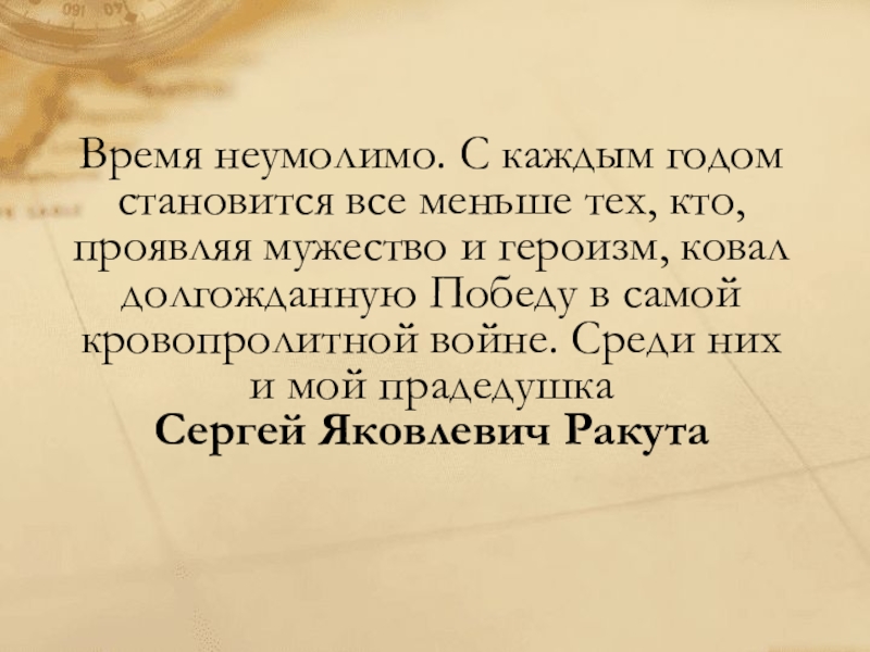 Слайд 7Время неумолимо. С каждым годом становится все меньше тех, кто, проявляя