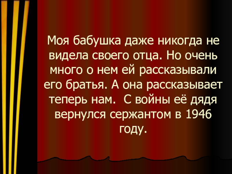 Слайд 6Моя бабушка даже никогда не видела своего отца. Но очень много