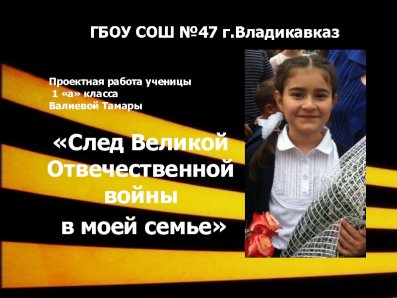 ГБОУ СОШ №47 г.Владикавказ«След Великой Отвечественной войны в моей семье»Проектная работа ученицы  1 «а» класса Валиевой