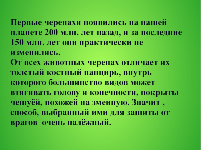 Слайд 3Первые черепахи появились на нашей планете 200 млн. лет назад, и