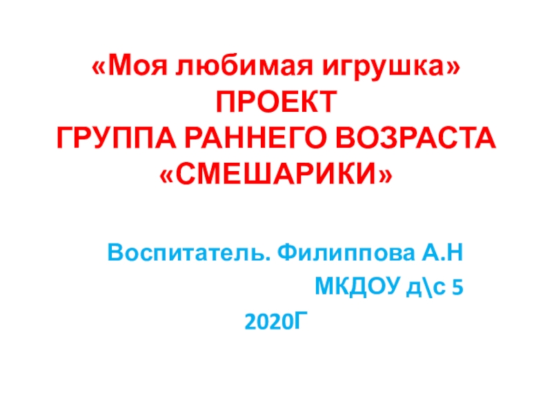 «Моя любимая игрушка» ПРОЕКТ ГРУППА РАННЕГО ВОЗРАСТА «СМЕШАРИКИ»   Воспитатель. Филиппова А.НМКДОУ д\с 52020Г