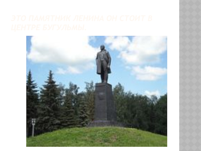 Слайд 4Это памятник Ленина он стоит в центре Бугульмы.