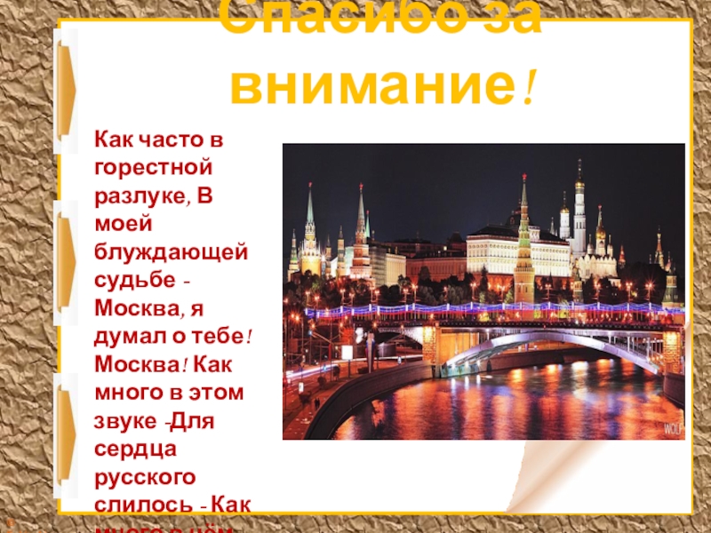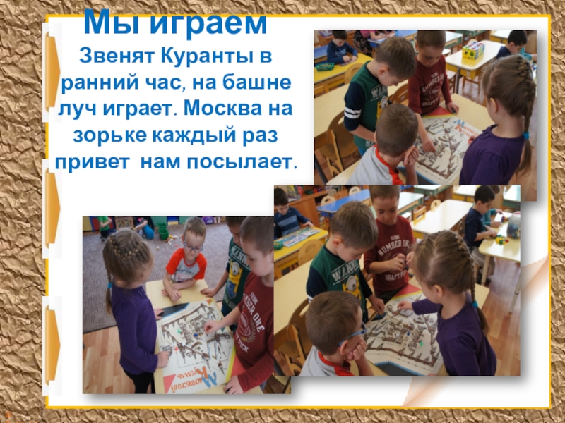 « Царь колокол и Царь пушка», конструирование, игровая деятельность: « Мы строим город», «Путешествие по городу», « Золотые ворота», «Поймай хвост дракона», чтение произведений о Москве, разучивание стихотворений, подбор иллюстраций о Москве.