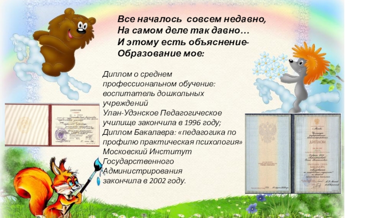 Улан-Удэнское Педагогическое училище закончила в 1996 году;