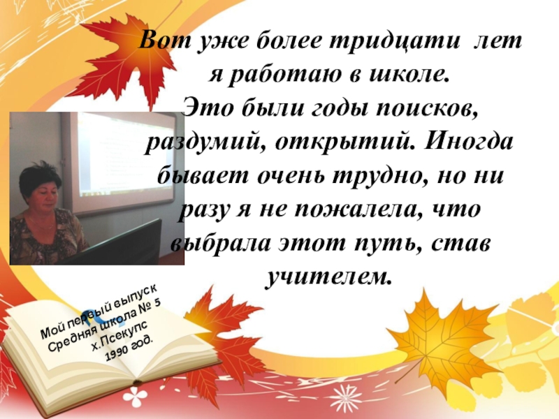 За годы работы в школе выработала свой взгляд на профессию учитель :