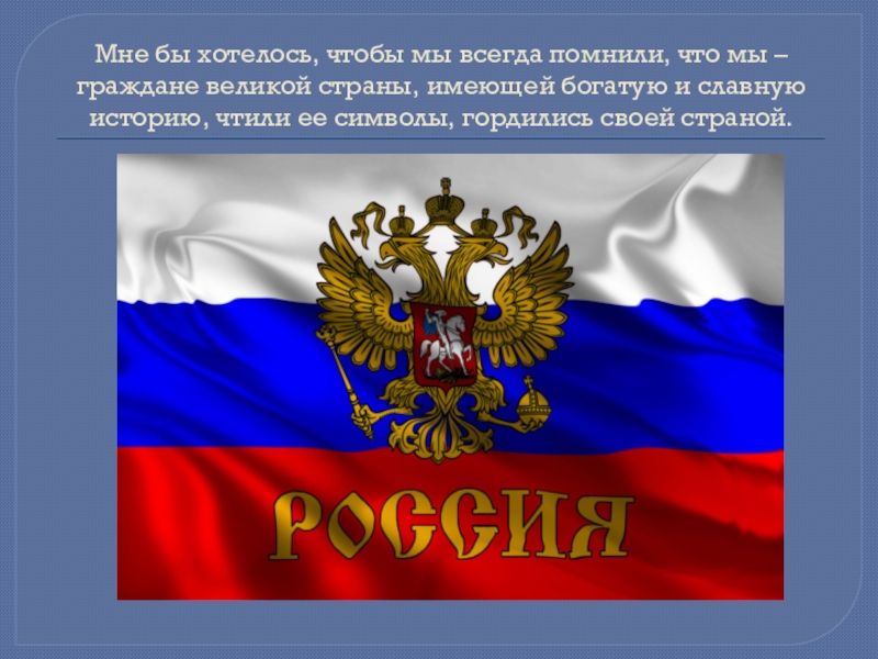 великой страны, имеющей богатую и славную историю, чтили ее символы, гордились своей страной.