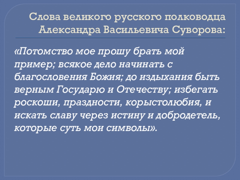 Слайд 22Слова великого русского полководца Александра Васильевича Суворова: