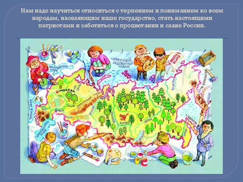Слайд 17Нам надо научиться относиться с терпением и пониманием ко всем народам,