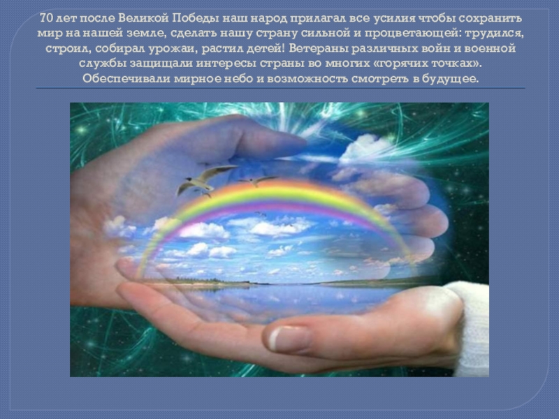 Слайд 1470 лет после Великой Победы наш народ прилагал все усилия чтобы