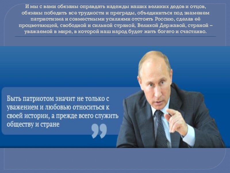 Слайд 21И мы с вами обязаны оправдать надежды наших великих дедов и