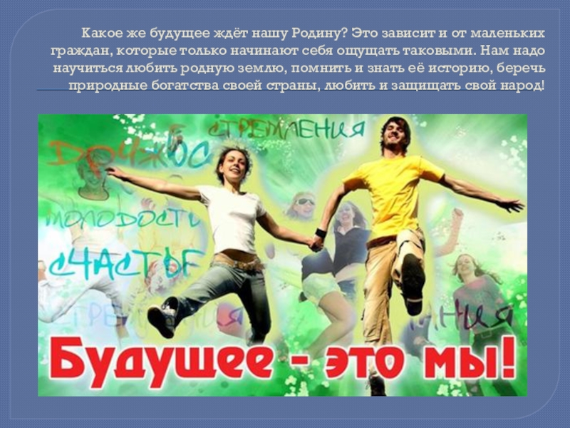Слайд 16Какое же будущее ждёт нашу Родину? Это зависит и от маленьких