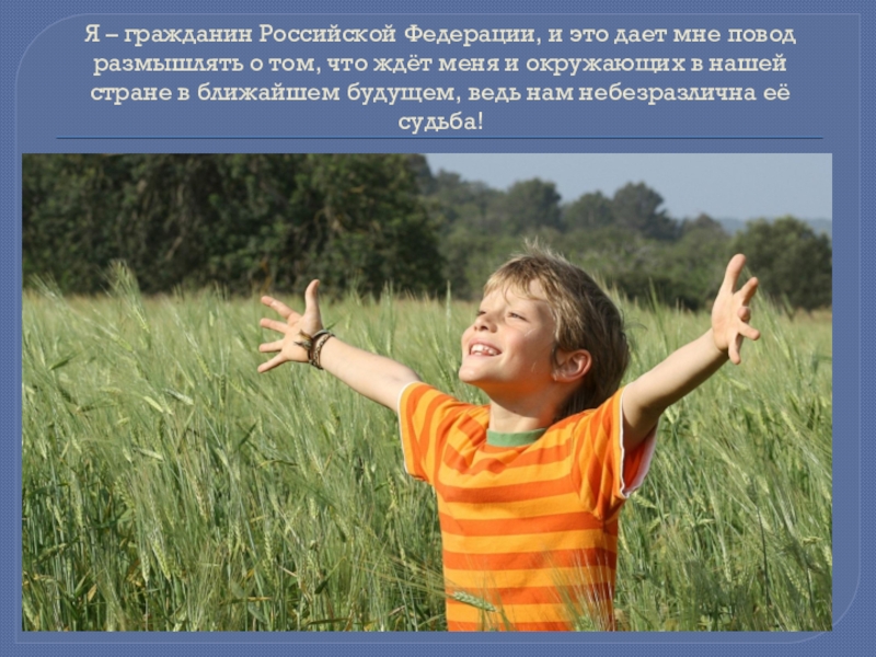 Слайд 20Я – гражданин Российской Федерации, и это дает мне повод размышлять