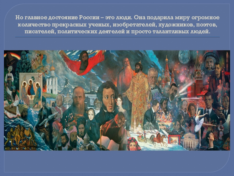 Слайд 6Но главное достояние России – это люди. Она подарила миру огромное