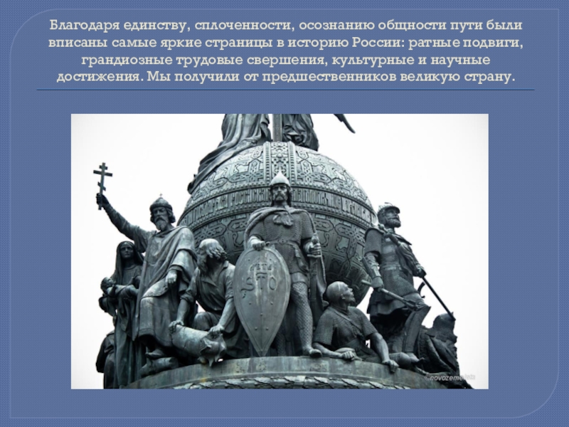 в историю России: ратные подвиги, грандиозные трудовые свершения, культурные и научные достижения. Мы получили от предшественников великую страну.