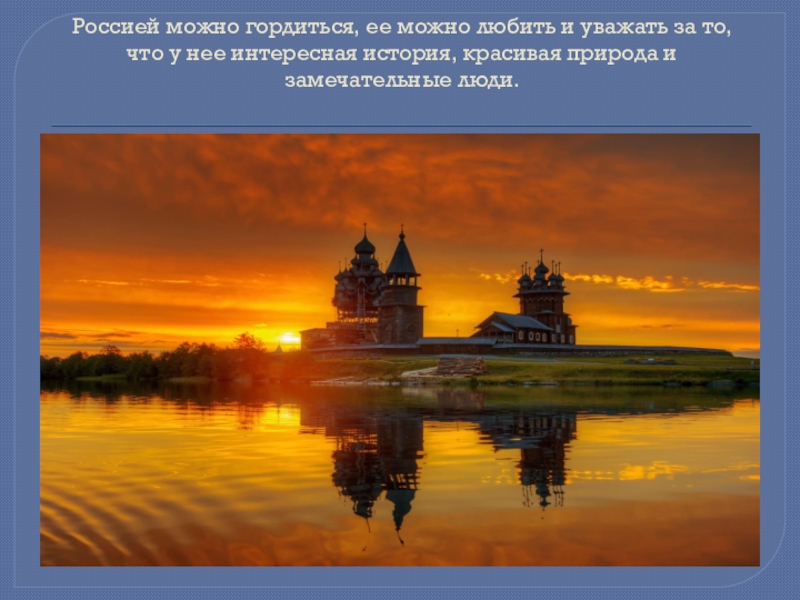 Слайд 4Россией можно гордиться, ее можно любить и уважать за то, что