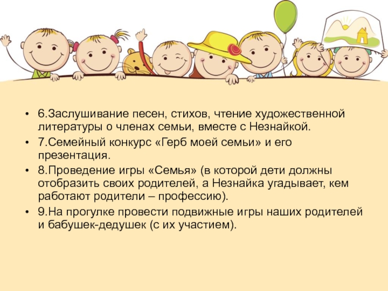 6.Заслушивание песен, стихов, чтение художественной литературы о членах семьи, вместе с