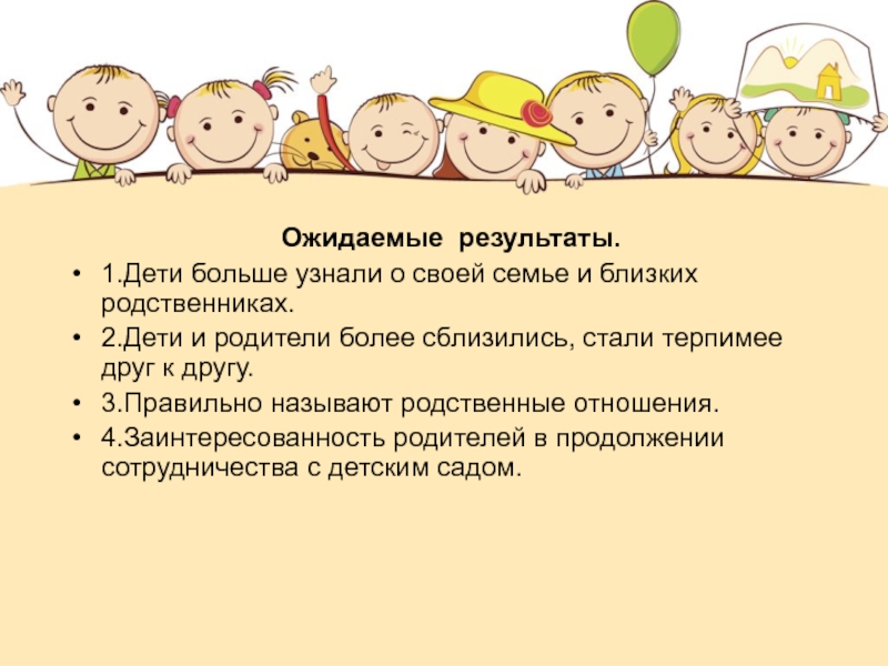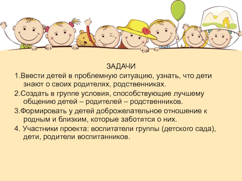 3.Формировать у детей доброжелательное отношение к родным и близким, которые заботятся о них.