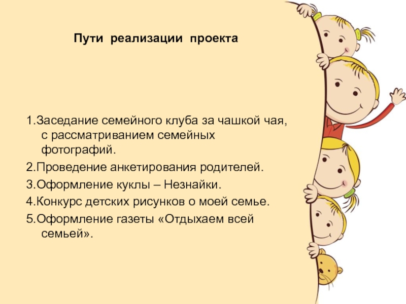 4. Участники проекта: воспитатели группы (детского сада), дети, родители воспитанников.