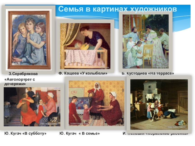 Ф. Кащеев «У колыбели» Б. Кустодиев «На террасе»