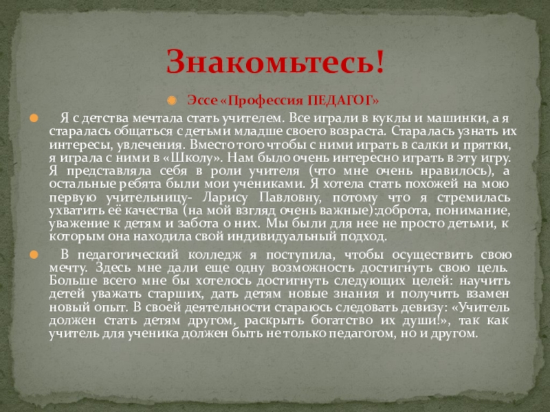 Девиз: «Учитель должен стать детям другом, раскрыть богатство их души!»