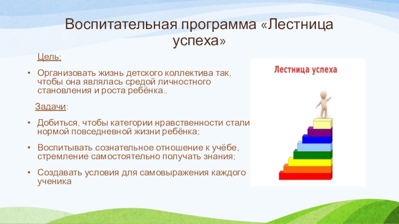Презентация, доклад на тему Моя воспитательная программа класса Лестница успеха