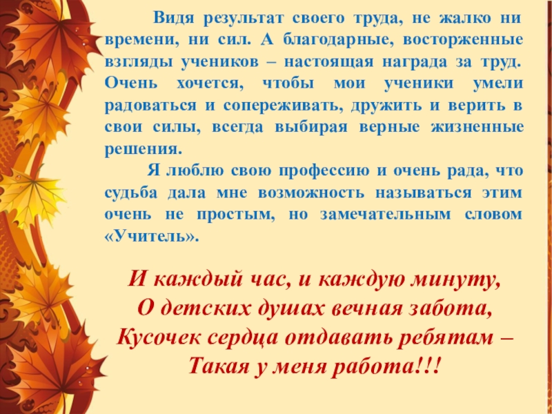 2014 – 2015 уч. год: участие в педагогическом совете с докладом на тему «Формирование интереса к учению – важное средство повышения качества обучения»