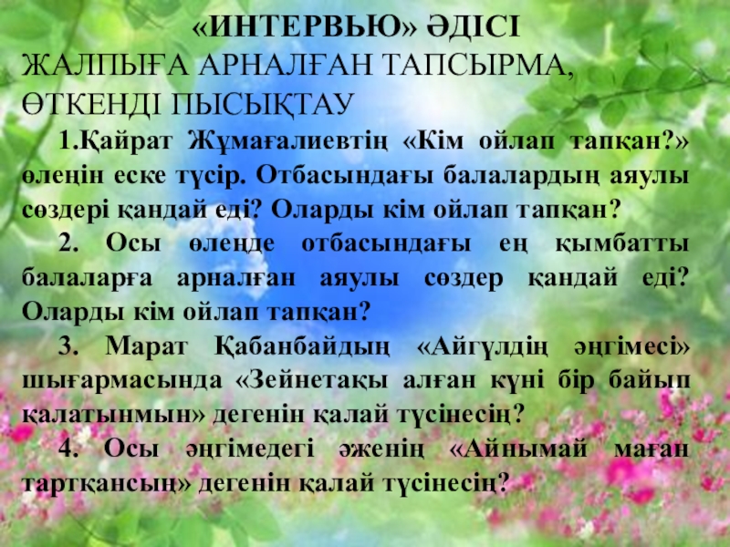 ЫНТЫМАҚТАСТЫҚ АТМОСФЕРАСЫН ҚАЛЫПТАСТЫРУ