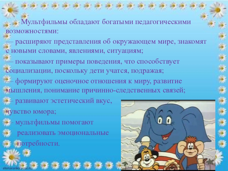 Мультфильмы обладают богатыми педагогическими возможностями: