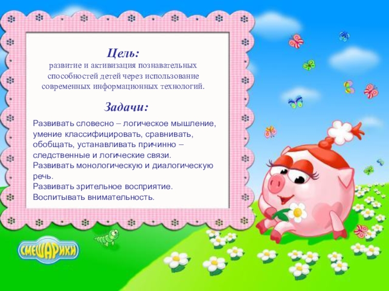 Развивать словесно – логическое мышление, умение классифицировать, сравнивать, обобщать, устанавливать причинно – следственные и логические связи.