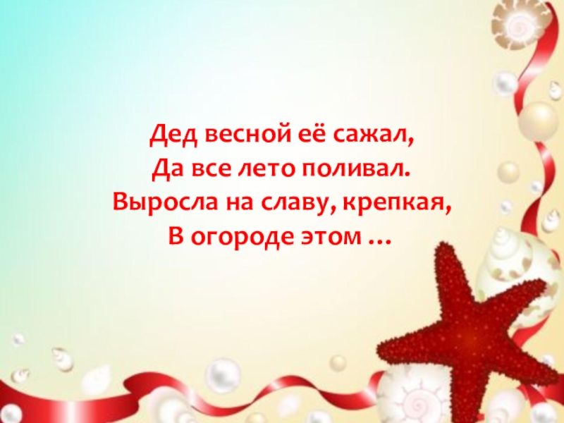 Дед весной её сажал,Да все лето поливал.Выросла на славу, крепкая,В огороде этом …